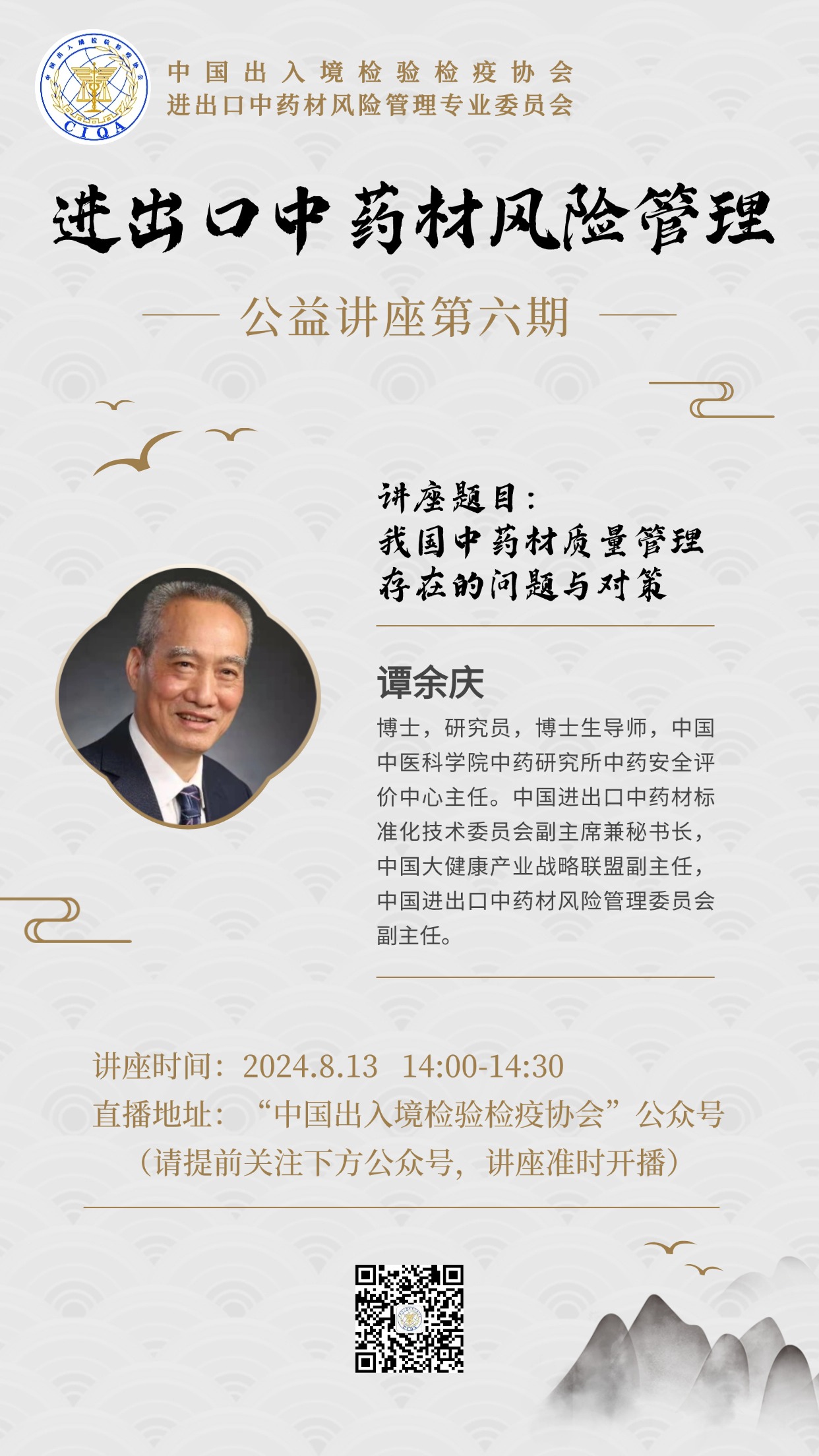 您现在的位置是:首页 > 工作动态与通知公告 进出口中药材风险管理第六期公益讲座 发布日期:2024-08-07 字体: 【小】 【中】 【大】 分享: 热门文章: 王新会长应邀出席加拿大肉类推广办公室在华成立活动[2025-10-30] 中澳熏蒸技术培训顺利举办[2025-10-30] 中国出入境检验检疫协会在沪成功举办认可技术培训班[2025-10-27] 中国出入境检验检疫协会张琳副秘书长率队赴广州调研实验室仪器设备运维服务工作[2025-10-20] 王新会长受福建省市场监督管理局邀请作内外贸一体化专题演讲[2025-09-30] 海关资讯 海关总署公告2025年第207号(关于进口阿塞拜疆榛子和扁桃仁检验检疫和卫生要求的公告) 海关总署公告2025年第205号(关于进口土耳其扁桃仁检验检疫要求的公告) 海关总署公告2025年第206号(关于进口乌兹别克斯坦樱桃干检验检疫和卫生要求的公告) 海关总署关于《中华人民共和国海关进口食品境外生产企业注册管理规定》的解读 粤港澳大湾区内地9市进出口连续9个季度同比正增长 海南:“零关税”进口药械政策享惠货值突破3亿元 海关总署公告2025年第203号(关于内地供港冰鲜禽肉、冷冻禽肉和冰鲜猪肉检验检疫要求的公告) 商务部贸易救济调查局关于召开相关猪肉及猪副产品反倾销案听证会有关事项的通知