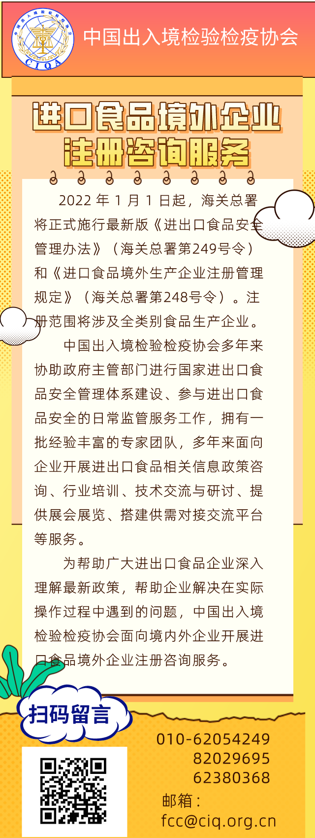 ÄúÏÖÔÚµÄλÖÃÊÇ£ºÊ×Ò³ > ²éѯ·þÎñ ½ø¿ÚʳƷ¾³ÍâÆóÒµ×¢²á×Éѯ·þÎñ ·¢²¼ÈÕÆÚ£º2021-11-22 ×ÖÌ壺 ¡¾Ð¡¡¿ ¡¾ÖС¿ ¡¾´ó¡¿ ·ÖÏí£º ÈÈÃÅÎÄÕ£º Öйú³öÈë¾³¼ìÑé¼ìÒßлáÁìµ¼µ½·ÃCotecna¼¯ÍÅÈÕÄÚÍß×ܲ¿[2023-05-24] Íõл᳤ӦÑû²Î¼ÓÎÚÀ¹ç¹ú¼ÒÈâÀàлáÑÇÖÞ´ú±í´¦½ÒÅÆÒÇʽ[2023-05-23] Íõл᳤»á¼û¶íÂÞ˹Î÷±±ÈâÀàлáÖ÷ϯһÐÐ[2023-05-23] ¼¼ÊõÐÔóÒ×´ëÊ©ÆÀÒéÐ×÷ÊÔµã»ùµØ£¨Ïð½ºÂÖÌ¥£©ôßÉú̬ԲúµØ²úÆ·±£»¤ÇøÊԵ㽨Éè×ù̸»áÔÚ¹ãÈÄÕÙ¿ª[2023-05-18] Öйú³öÈë¾³¼ìÑé¼ìÒßлáÓë¹ú¼Ò±ê×¼¼¼ÊõÉóÆÀÖÐÐÄÇ©ÊðÕ½ÂÔºÏ×÷ÐÒé[2023-05-12] º£¹Ø×ÊѶ º£¹Ø×ÜÊð¶¯Ö²Îï¼ìÒß˾£º¹ØÓÚ»Ö¸´Ì¨ÍåµØÇø·¬ÀóÖ¦ÊäÈë´ó½µÄ֪ͨ ÁªºÏ·¢²¼ | ¹ØÓÚ½â³ýÒâ´óÀûÆäËûµØÇøÖíË®Åݲ¡ÒßÇé½ûÁîµÄ¹«¸æ ÁªºÏ·¢²¼ | ¹ØÓÚ½â³ý²¨À¼30ÔÂÁäÒÔÏÂÌÞ¹ÇÅ£Èâ½ûÁîµÄ¹«¸æ ÁªºÏ·¢²¼ | ¹ØÓÚ½â³ý±ÈÀûʱ30ÔÂÁäÒÔÏÂÌÞ¹ÇÅ£Èâ½ûÁîµÄ¹«¸æ ½ø¿ÚʳƷ¾³ÍâÉú²úÆóÒµ×¢²á¹ÜÀíϵͳ²Ù×÷ÑÝʾ º£¹Ø×ÜÊðÍÆ³öÓÅ»¯ÓªÉÌ»·¾³16Ìõ Á¬Ðø4¸öÔ±£³ÖÕýÔö³¤ÕÃÏÔÎÒ¹úÍâó¡°ÈÍʵÁ¦¡± ½ñÄêǰ5¸öÔÂÎÒ¹ú½ø³ö¿ÚÔö³¤4.7%
