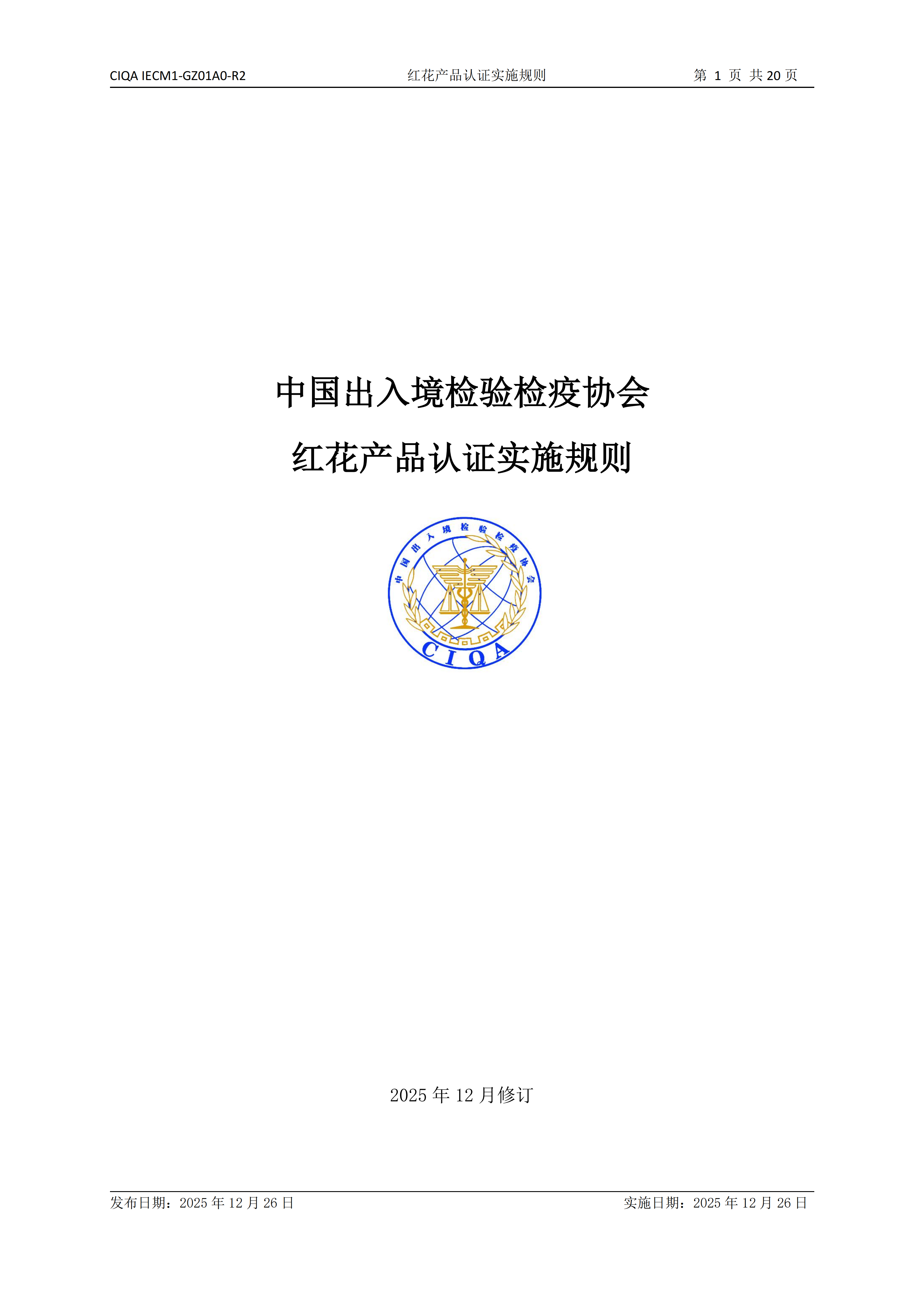 ÄúÏÖÔÚµÄλÖÃÊÇ£ºÊ×Ò³ > ÍÅÌå±ê×¼Îļþ CIQA IECM1-GZ01A0-R2¡¶ºì»¨²úÆ·ÈÏ֤ʵʩ¹æÔò¡· ·¢²¼ÈÕÆÚ£º2025-12-29 ×ÖÌ壺 ¡¾Ð¡¡¿ ¡¾ÖС¿ ¡¾´ó¡¿ È«ÎÄÇëÏÂÔØ¸½¼þ Ïà¹Ø¸½¼þ£º 25.12ÐÞ¶©ciqa iecm1-gz01a0-r2 ºì»¨²úÆ·ÈÏ֤ʵʩ¹æÔò.pdf ·ÖÏí£º ÈÈÃÅÎÄÕ£º ¼ì²âºÍУ׼ʵÑéÊÒÈϿɼ¼ÊõÅàѵ°àÔÚÎ÷°²³É¹¦¾Ù°ì[2025-12-16] ÖØ°õ£¡Öйú³öÈë¾³¼ìÑé¼ìÒßлá¹ú¼ÊóÒ×±ãÀû»¯·Ö»áÕýʽ³ÉÁ¢[2025-11-22] µÚÆß½ì¹ú¼Ê¼ì²©»áÔ²Âú¾Ù°ì£ºÁ´¶¯È«²úÒµÁ´£¬¹²Æô¼ìÑé¼ì²âÐÂÉú̬[2025-11-17] Öйú³öÈë¾³¼ìÑé¼ìÒßлá²Î¼ÓµÚ°Ë½ìÖйú¹ú¼Ê½ø¿Ú²©ÀÀ»á¼°Ïà¹Ø»î¶¯[2025-11-11] ÑÇÌ«£¨¹ãÖÝ£©³èÎïË®×å½»Ò×»áÔÚ¹ãÖÝÕÙ¿ª[2025-11-10] º£¹Ø×ÊѶ 12ÔÂ18ÈÕ£¬º£ÄÏ×ÔÓÉóÒ׸ÛÈ«µº·â¹Ø¡£¼ÇÕßÖ±»÷¡ª¡ªÈ«µº·â¹ØµÚÒ»Ì죨ÈËÃñÑÛ¡¤º£ÄÏ×Ôó¸Û£© ¡°¼Ó¿ì½¨Éè¾ßÓÐÊÀ½çÓ°ÏìÁ¦µÄÖйúÌØÉ«×ÔÓÉóÒ׸ۡ± º£¹Ø×ÜÊ𹫸æ2025ÄêµÚ247ºÅ£¨¹ØÓÚ½ø¿Úº«¹úÏÊʳÊÁ×ÓÖ²Îï¼ìÒßÒªÇóµÄ¹«¸æ£© º£¹Ø×ÜÊ𹫸æ2025ÄêµÚ245ºÅ£¨¹ØÓÚ½ø¿ÚŲÍþÈ鯷¼ìÑé¼ìÒߺÍʳƷ°²È«ÒªÇóµÄ¹«¸æ£© ÉÌÎñ²¿¹«¸æ2025ÄêµÚ80ºÅ ¹«²¼¶ÔÔ²úÓÚÅ·Ã˵Ľø¿ÚÏà¹ØÖíÈâ¼°Öí¸±²úÆ··´ÇãÏúµ÷²éµÄ×îÖղö¨ º£¹Ø×ÜÊ𹫸æ2025ÄêµÚ246ºÅ£¨¹ØÓÚ·¢²¼¡¶³ö¿ÚʳƷ΢ÉúÎïѧ¼ìÑéͨÔò¡·µÈ117ÏîÐÐÒµ±ê×¼µÄ¹«¸æ£© º£¹Ø×ÜÊ𹫸æ2025ÄêµÚ244ºÅ£¨¹ØÓÚ½ø¿ÚÀÏÎÎÏÊʳÁñÁ«Ö²Îï¼ìÒßÒªÇóµÄ¹«¸æ£© Õþ²ß½â¶Á | ¹ØÓÚ½ø¿Ú¶íÂÞ˹Â̶¹Ö²Îï¼ìÒßÒªÇóµÄ¹«¸æ