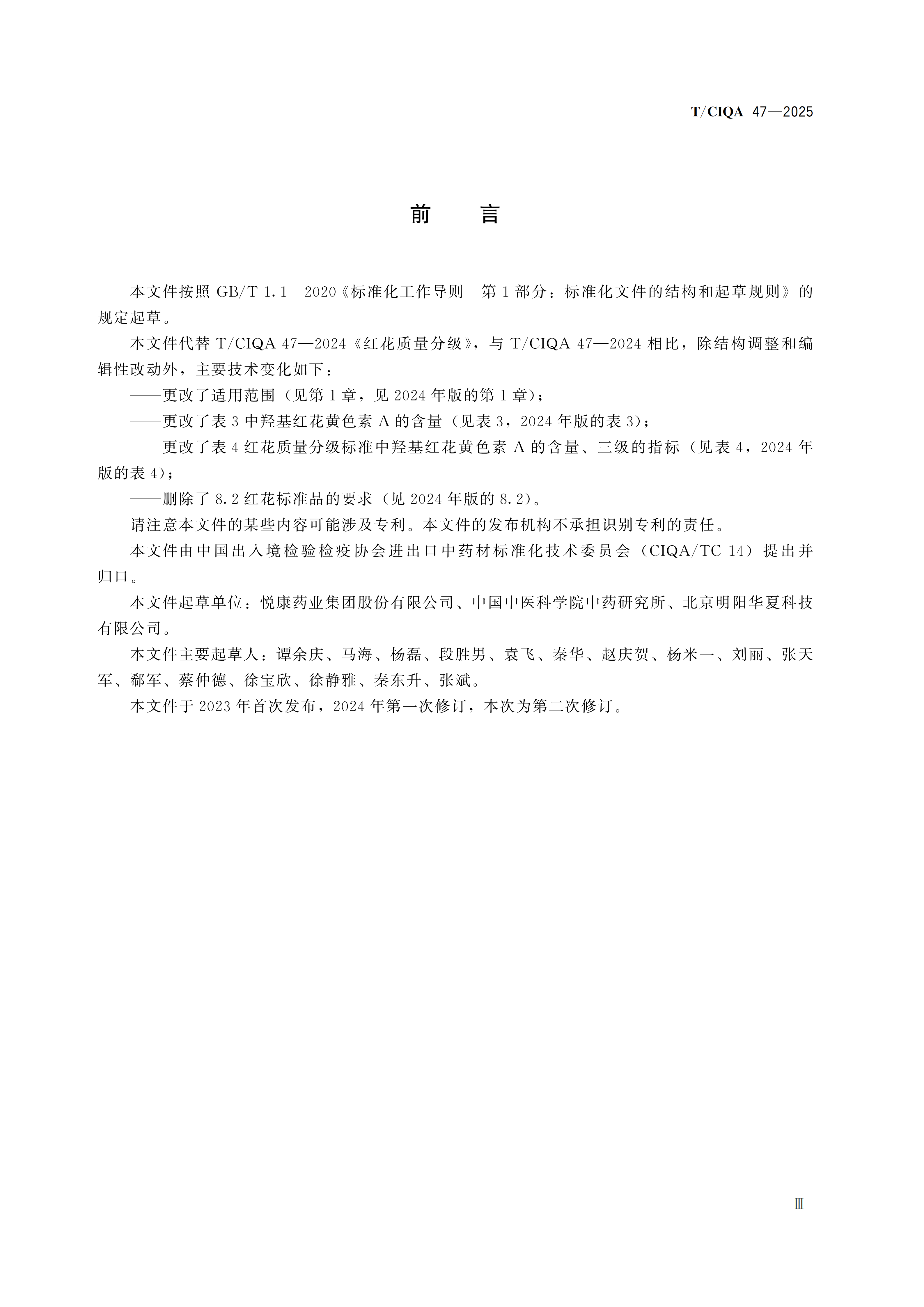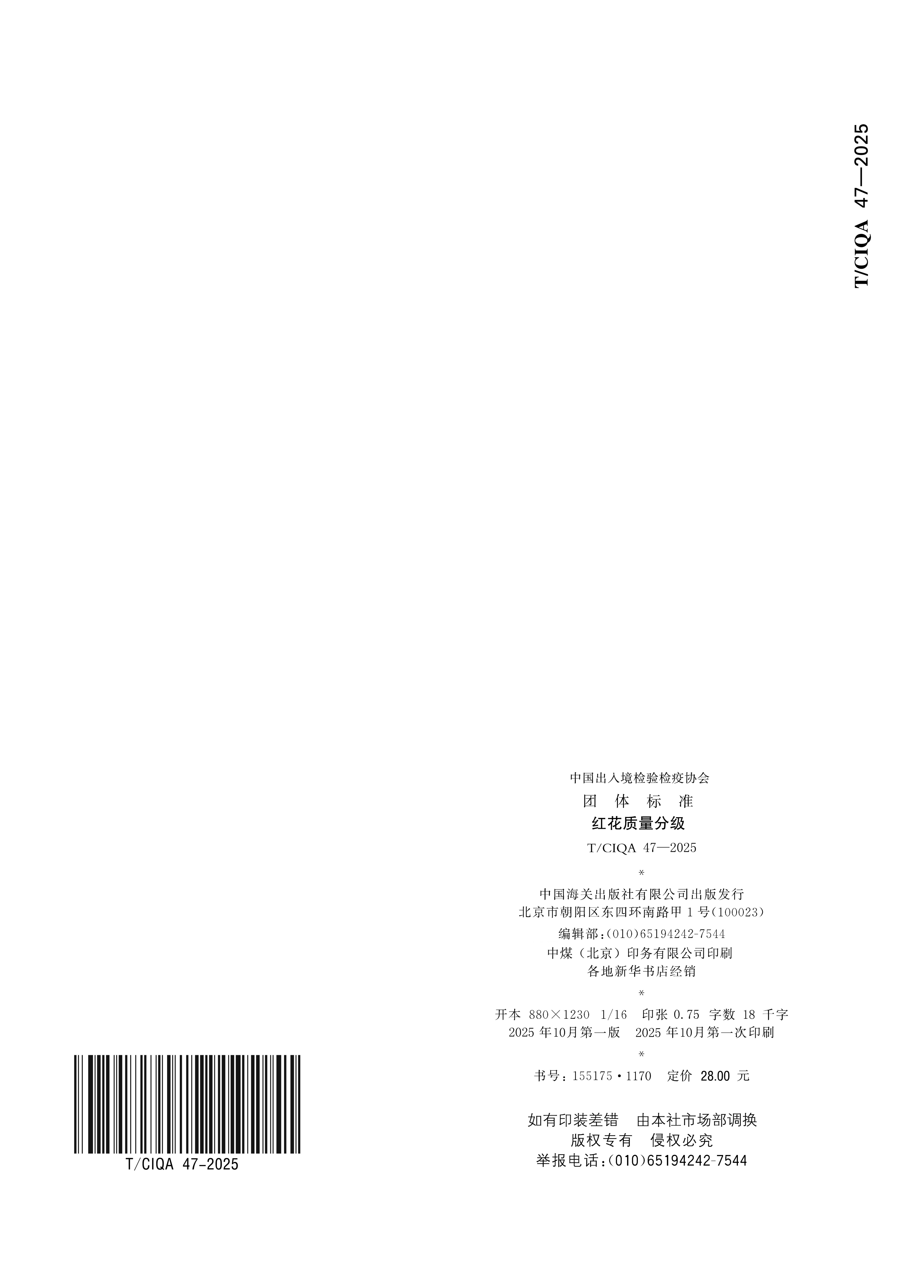 ÄúÏÖÔÚµÄλÖÃÊÇ£ºÊ×Ò³ > ÍÅÌå±ê×¼Îļþ TCIQA 47-2022¡¶ºì»¨ÖÊÁ¿·Ö¼¶¡· ·¢²¼ÈÕÆÚ£º2025-12-29 ×ÖÌ壺 ¡¾Ð¡¡¿ ¡¾ÖС¿ ¡¾´ó¡¿ ·ÖÏí£º ÈÈÃÅÎÄÕ£º ¼ì²âºÍУ׼ʵÑéÊÒÈϿɼ¼ÊõÅàѵ°àÔÚÎ÷°²³É¹¦¾Ù°ì[2025-12-16] ÖØ°õ£¡Öйú³öÈë¾³¼ìÑé¼ìÒßлá¹ú¼ÊóÒ×±ãÀû»¯·Ö»áÕýʽ³ÉÁ¢[2025-11-22] µÚÆß½ì¹ú¼Ê¼ì²©»áÔ²Âú¾Ù°ì£ºÁ´¶¯È«²úÒµÁ´£¬¹²Æô¼ìÑé¼ì²âÐÂÉú̬[2025-11-17] Öйú³öÈë¾³¼ìÑé¼ìÒßлá²Î¼ÓµÚ°Ë½ìÖйú¹ú¼Ê½ø¿Ú²©ÀÀ»á¼°Ïà¹Ø»î¶¯[2025-11-11] ÑÇÌ«£¨¹ãÖÝ£©³èÎïË®×å½»Ò×»áÔÚ¹ãÖÝÕÙ¿ª[2025-11-10] º£¹Ø×ÊѶ 12ÔÂ18ÈÕ£¬º£ÄÏ×ÔÓÉóÒ׸ÛÈ«µº·â¹Ø¡£¼ÇÕßÖ±»÷¡ª¡ªÈ«µº·â¹ØµÚÒ»Ì죨ÈËÃñÑÛ¡¤º£ÄÏ×Ôó¸Û£© ¡°¼Ó¿ì½¨Éè¾ßÓÐÊÀ½çÓ°ÏìÁ¦µÄÖйúÌØÉ«×ÔÓÉóÒ׸ۡ± º£¹Ø×ÜÊ𹫸æ2025ÄêµÚ247ºÅ£¨¹ØÓÚ½ø¿Úº«¹úÏÊʳÊÁ×ÓÖ²Îï¼ìÒßÒªÇóµÄ¹«¸æ£© º£¹Ø×ÜÊ𹫸æ2025ÄêµÚ245ºÅ£¨¹ØÓÚ½ø¿ÚŲÍþÈ鯷¼ìÑé¼ìÒߺÍʳƷ°²È«ÒªÇóµÄ¹«¸æ£© ÉÌÎñ²¿¹«¸æ2025ÄêµÚ80ºÅ ¹«²¼¶ÔÔ²úÓÚÅ·Ã˵Ľø¿ÚÏà¹ØÖíÈâ¼°Öí¸±²úÆ··´ÇãÏúµ÷²éµÄ×îÖղö¨ º£¹Ø×ÜÊ𹫸æ2025ÄêµÚ246ºÅ£¨¹ØÓÚ·¢²¼¡¶³ö¿ÚʳƷ΢ÉúÎïѧ¼ìÑéͨÔò¡·µÈ117ÏîÐÐÒµ±ê×¼µÄ¹«¸æ£© º£¹Ø×ÜÊ𹫸æ2025ÄêµÚ244ºÅ£¨¹ØÓÚ½ø¿ÚÀÏÎÎÏÊʳÁñÁ«Ö²Îï¼ìÒßÒªÇóµÄ¹«¸æ£© Õþ²ß½â¶Á | ¹ØÓÚ½ø¿Ú¶íÂÞ˹Â̶¹Ö²Îï¼ìÒßÒªÇóµÄ¹«¸æ